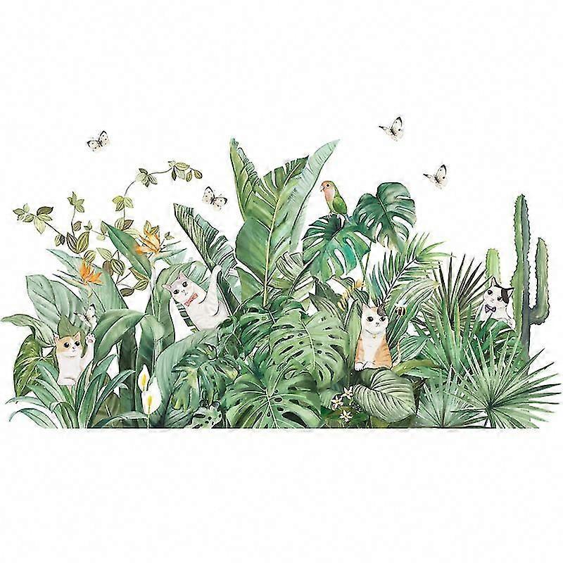 Cat Butterfly Bird Wall Decals - Plant Themed Stickers for Living Room, Bedroom, Kitchen, Bathroom