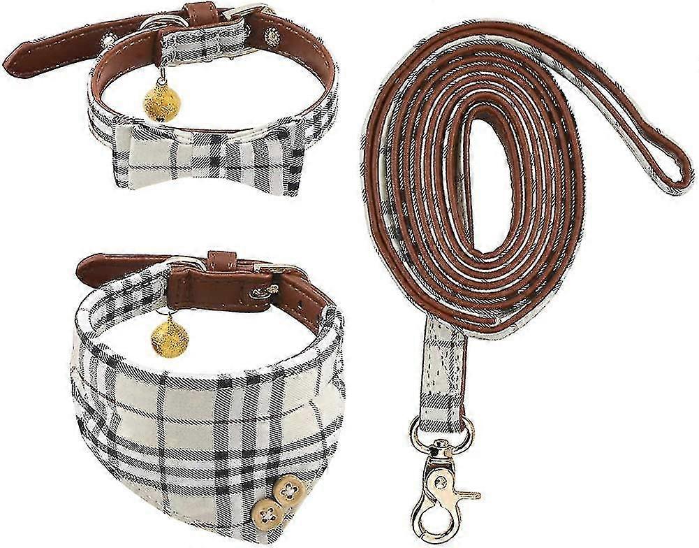 Cat Collar Dog Collar And Leash Set, 3 Piece Adjustable Bandana Bow Tie With Bell