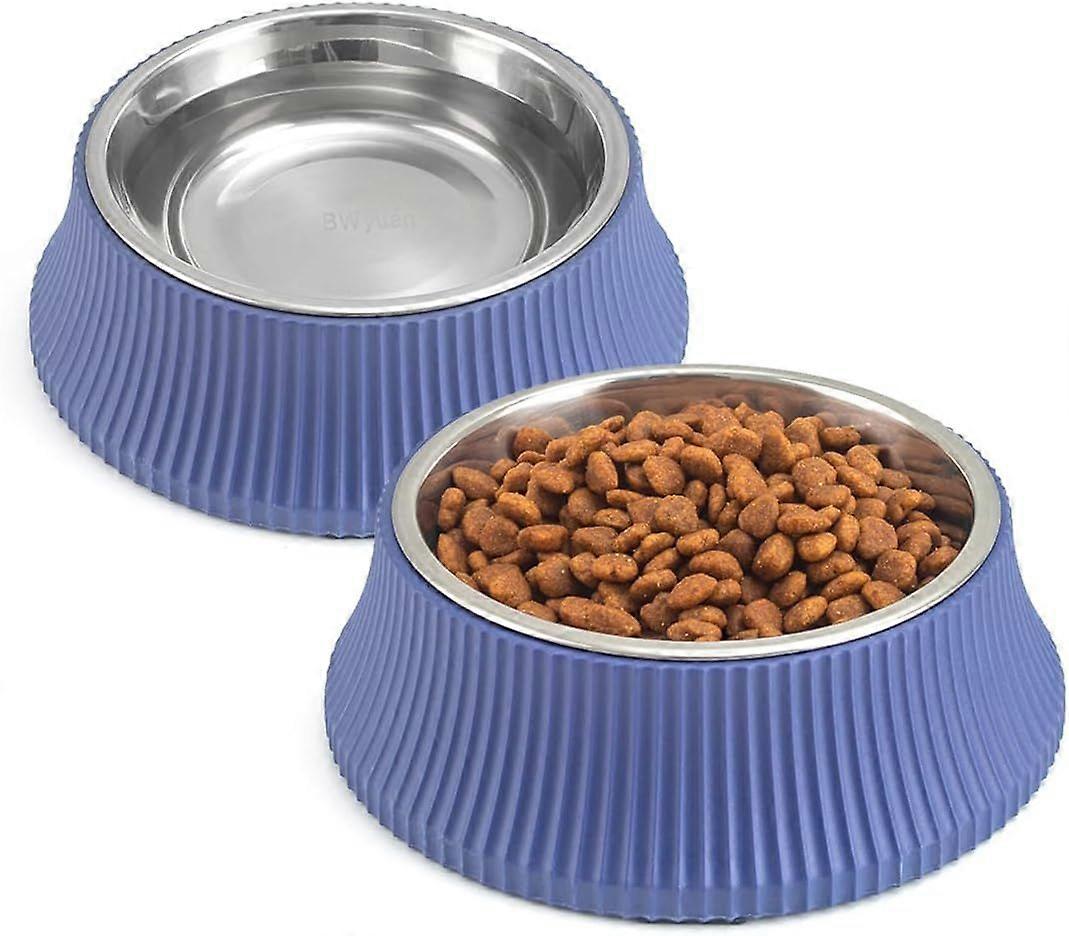 Cat Feeding Bowl Dog Bowl Stainless Steel Non-Slip Mat + Enlarge Bottom Base Dog and Cat Feeding Bowl and Water Bowl (400ml x 2 Blue)