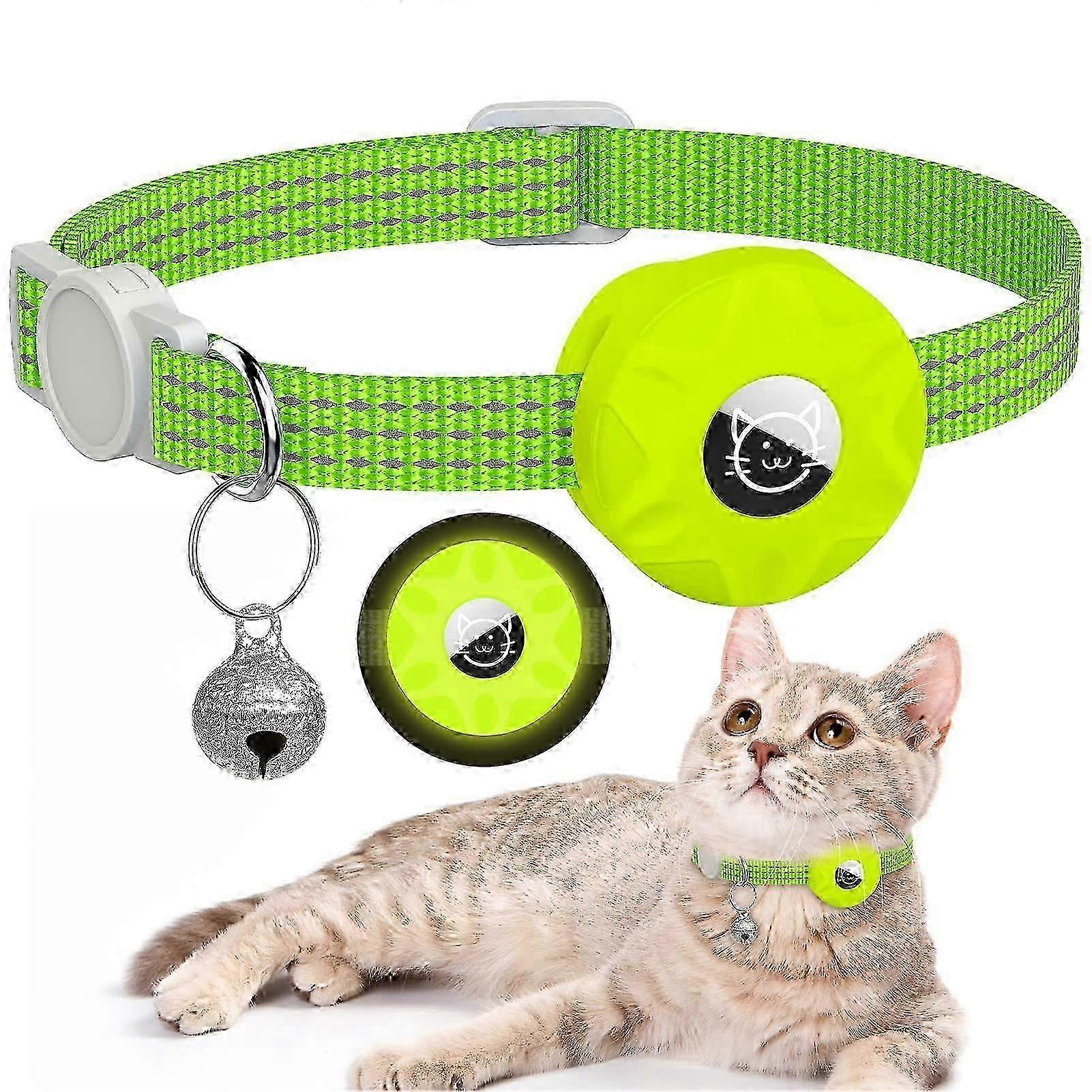 Cat collar, reflective kitten collar, detachable Apple Air Tag cat collar, GPS cat collar with holder and bell (orange, luminous yellow)