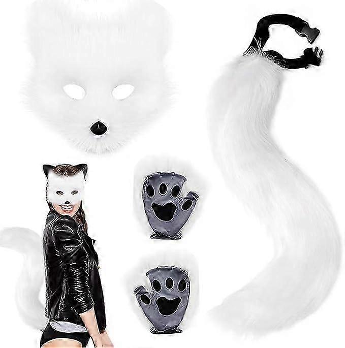 Cat Fox Wolf Cosplay, Furry Fox Mask, Handmade Fox Wolf Ears + Fox Tails Costume + Cat Fox Gloves, Carnival Halloween Pa Walkbee 6013