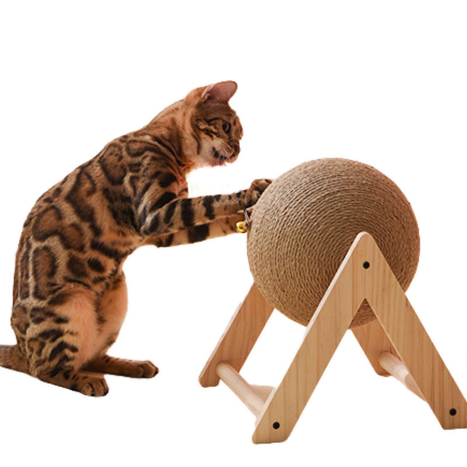 Cat Scratching Ball Pet Cat Scratcher Interactive Funny Toy Natural Wooden Sisal