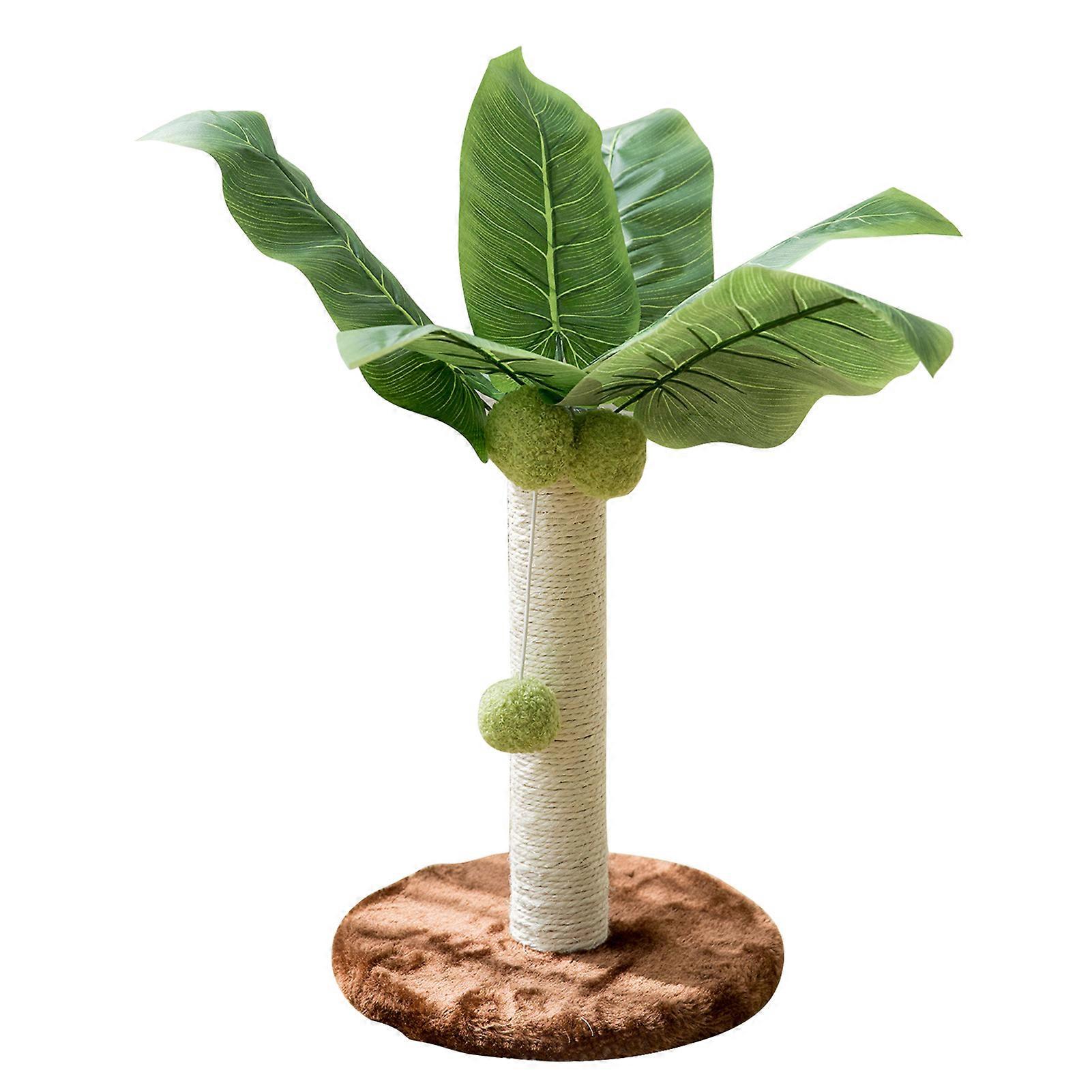 Cat Scratching Post 12.6in High 9.8in Base Hanging Balls Green Leaves Sisal Hemp Cat Scratcher for House Bedroom Indoor Coffee Color