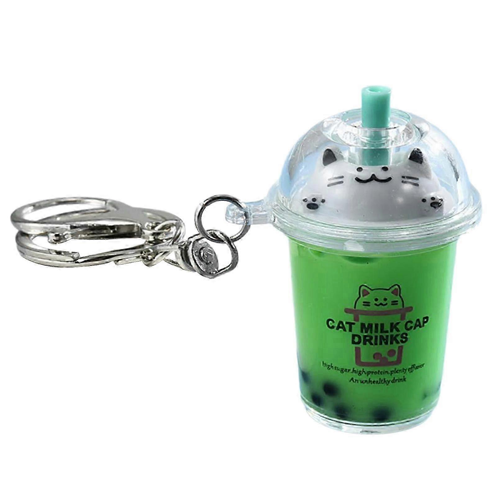 Cat Bubble Tea Keychain Acrylic Pendant Keyring Milk Tea Shaped Couple Key Rings Stylish Ornament for Bag Phones Key White