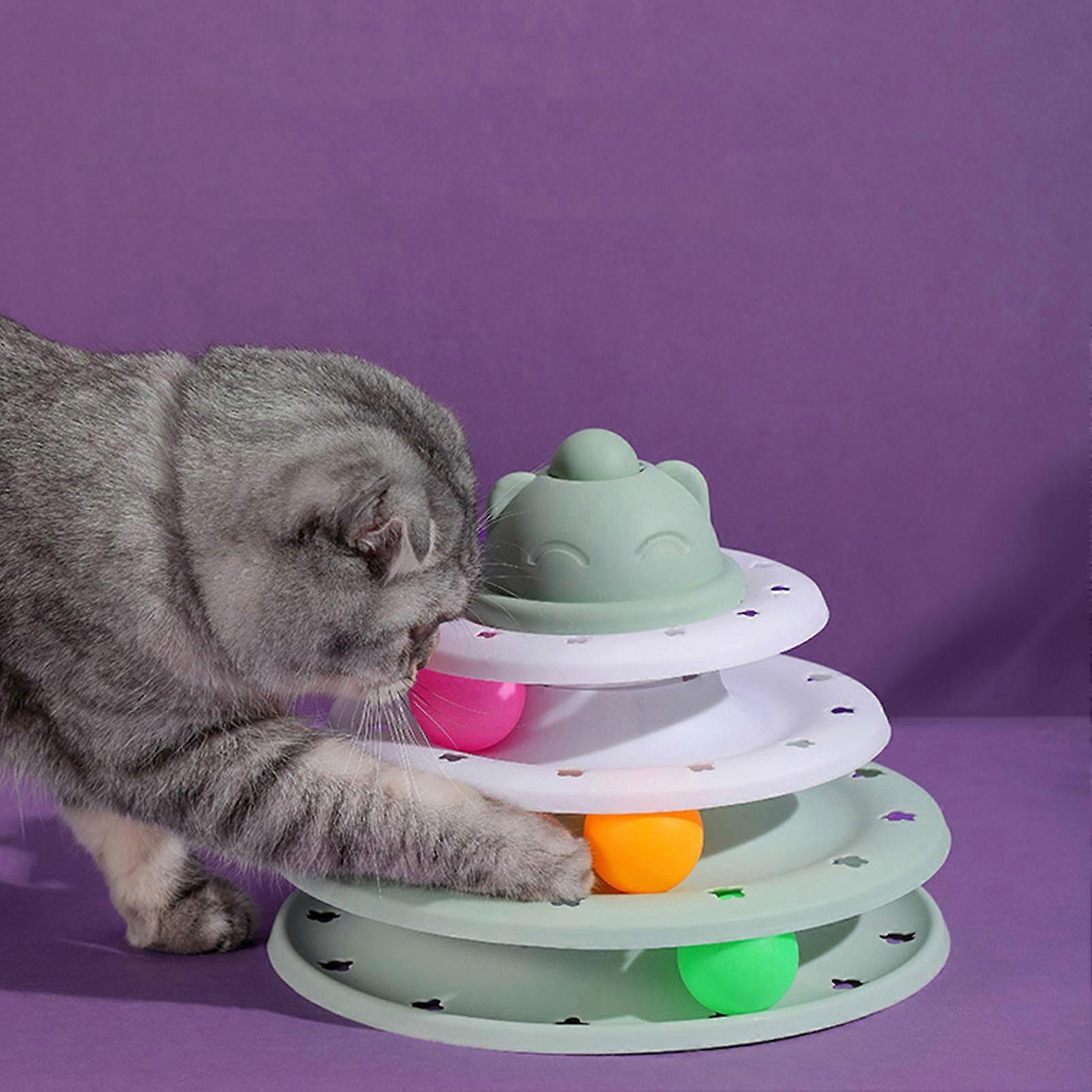 Cat Turntable Ball Toy 3 Tier 24x19cm Interactive Green White
