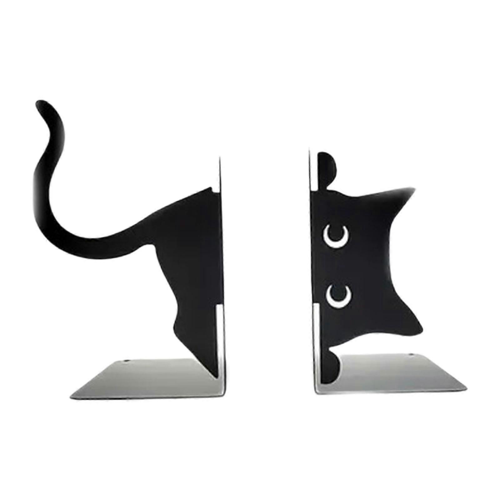 Cat Bookends Decoration Black Cat Sculpture for Heavy Books Book Organizer