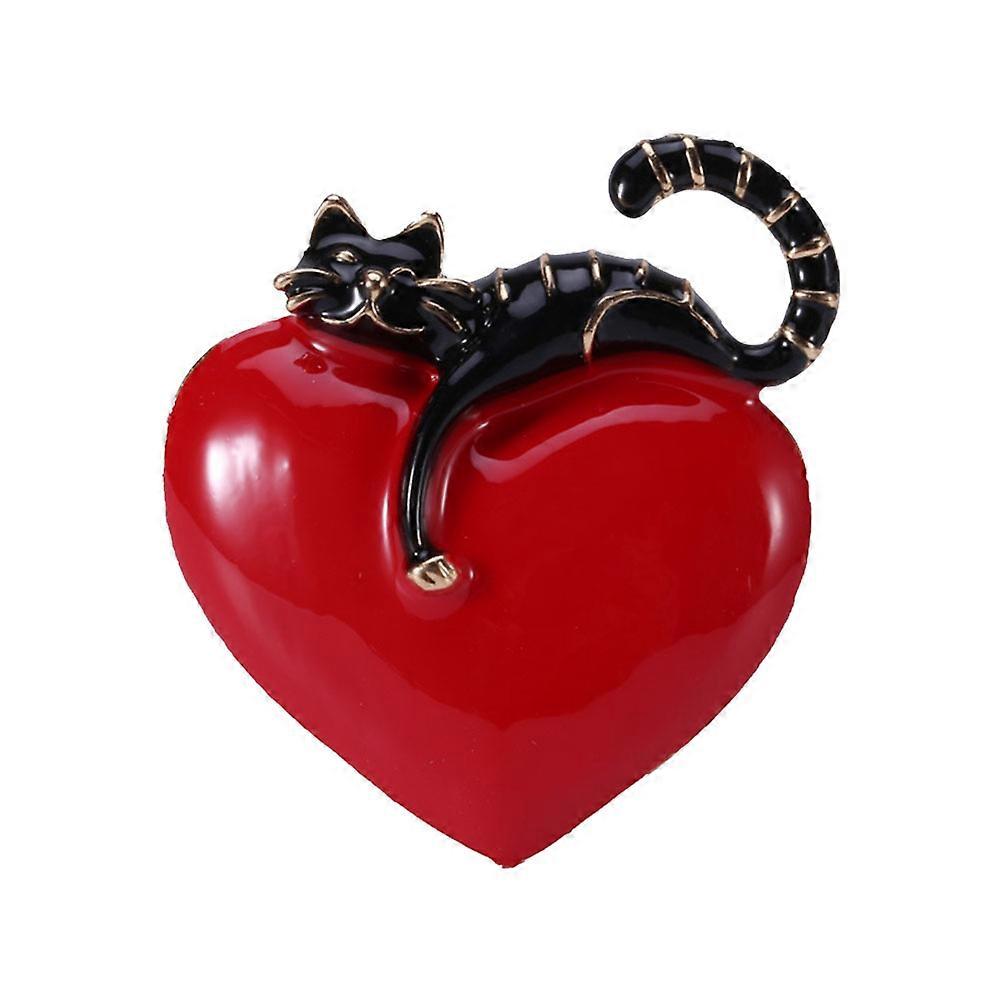 Cat Brooch Creative Kitten Design Chic Heart Shape Brooch Pin For Banquet Small present Black 4.6x4.1cm 1Pack
