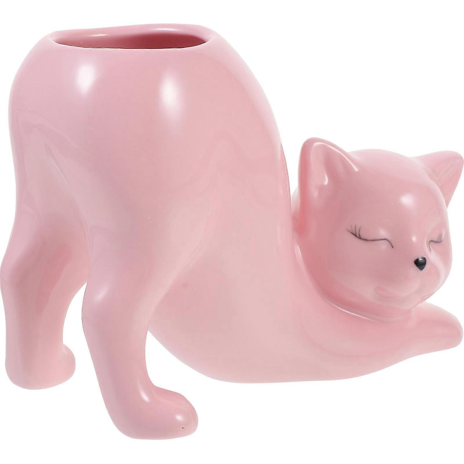 Cat Planter Ceramic Cartoon Flower Pot Desktop Use For Children Pink 14.50X9.80X3.60CM 1Set