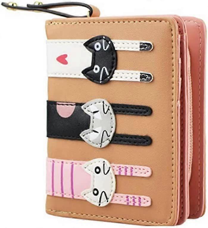 Cat Pattern Wallet, Cute Cartoon Coin Purse with Zipper Credit Card Case Coin Pouch Gifts for Women Girls (Light Brown)1pcs