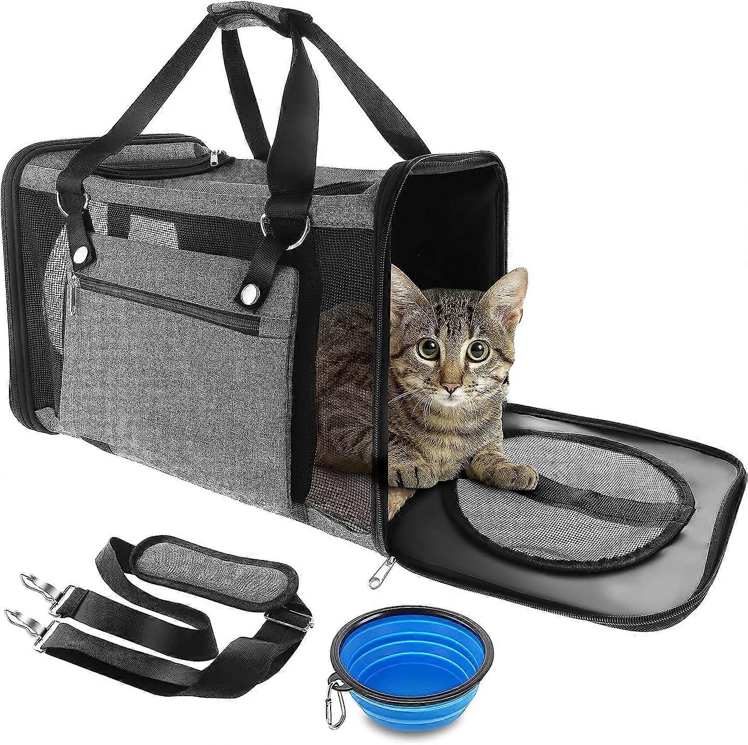 Cat Dog Carrier Bag, Cat Dog Carrier Crate, Waterproof Breathable, with Plush Mattress and Bowl, Airplane Dog Cage 47 * 27 * 28CM