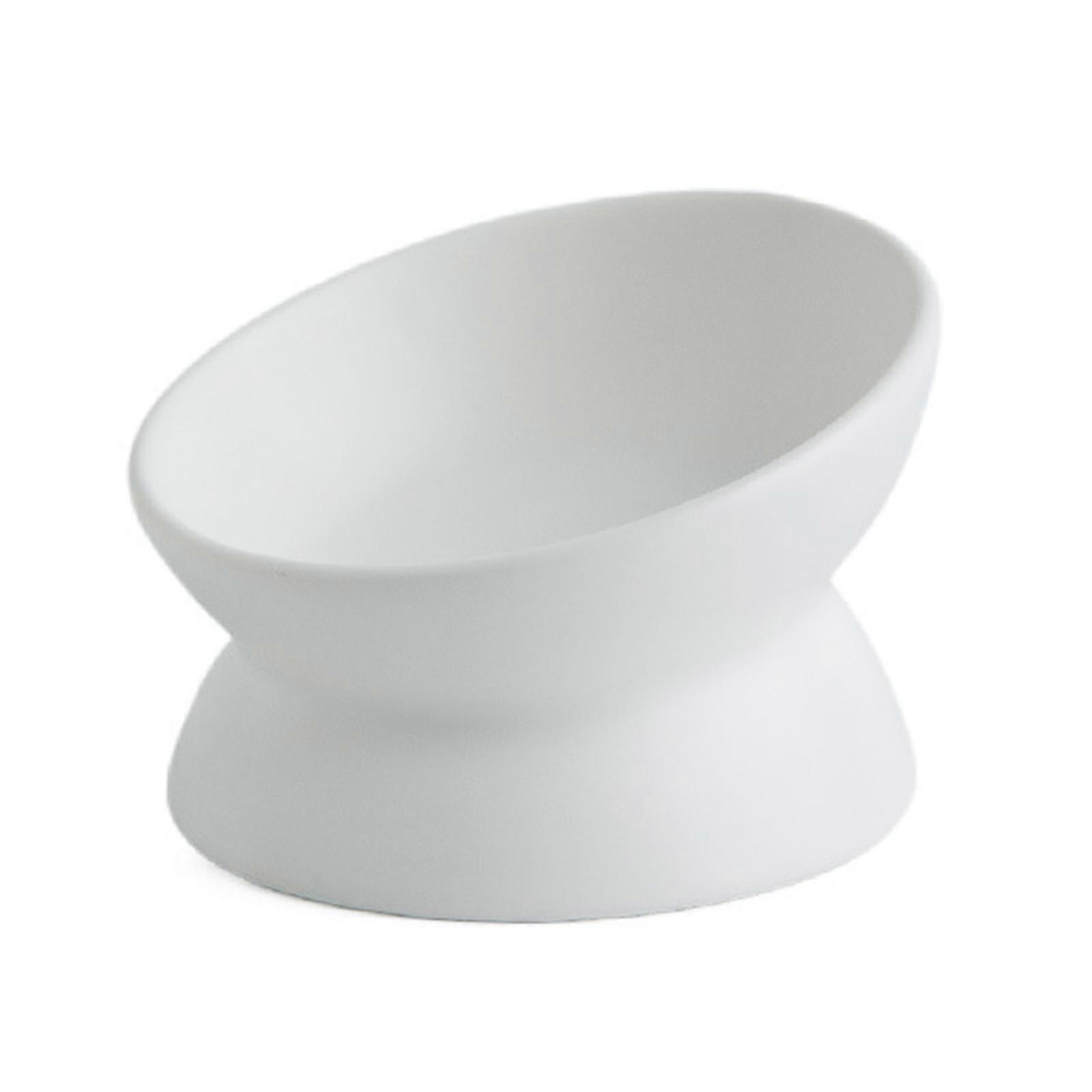 for Cat Elevated Bowls 15° Tilted Raised Dish Pet Feeding Bowl with Stand for Cats and Puppy Safe Ceramics Easy to Clean White