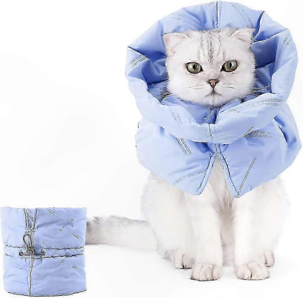 Soft Blue Recovery Collar for Cats, Adjustable Post-Surgery Pet Accessory, Size S