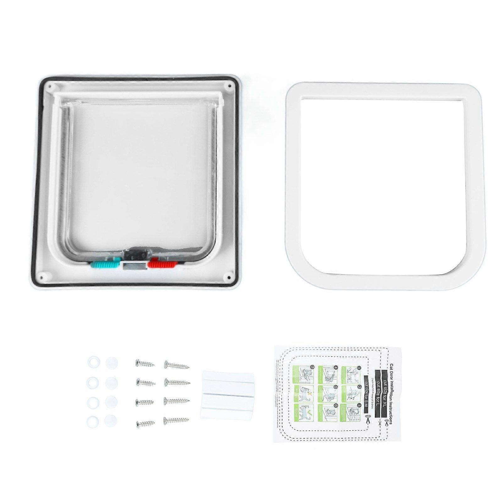 Cat Flap Door Lockable Low Noise Interior Exterior Kitten Door for Window Wall White
