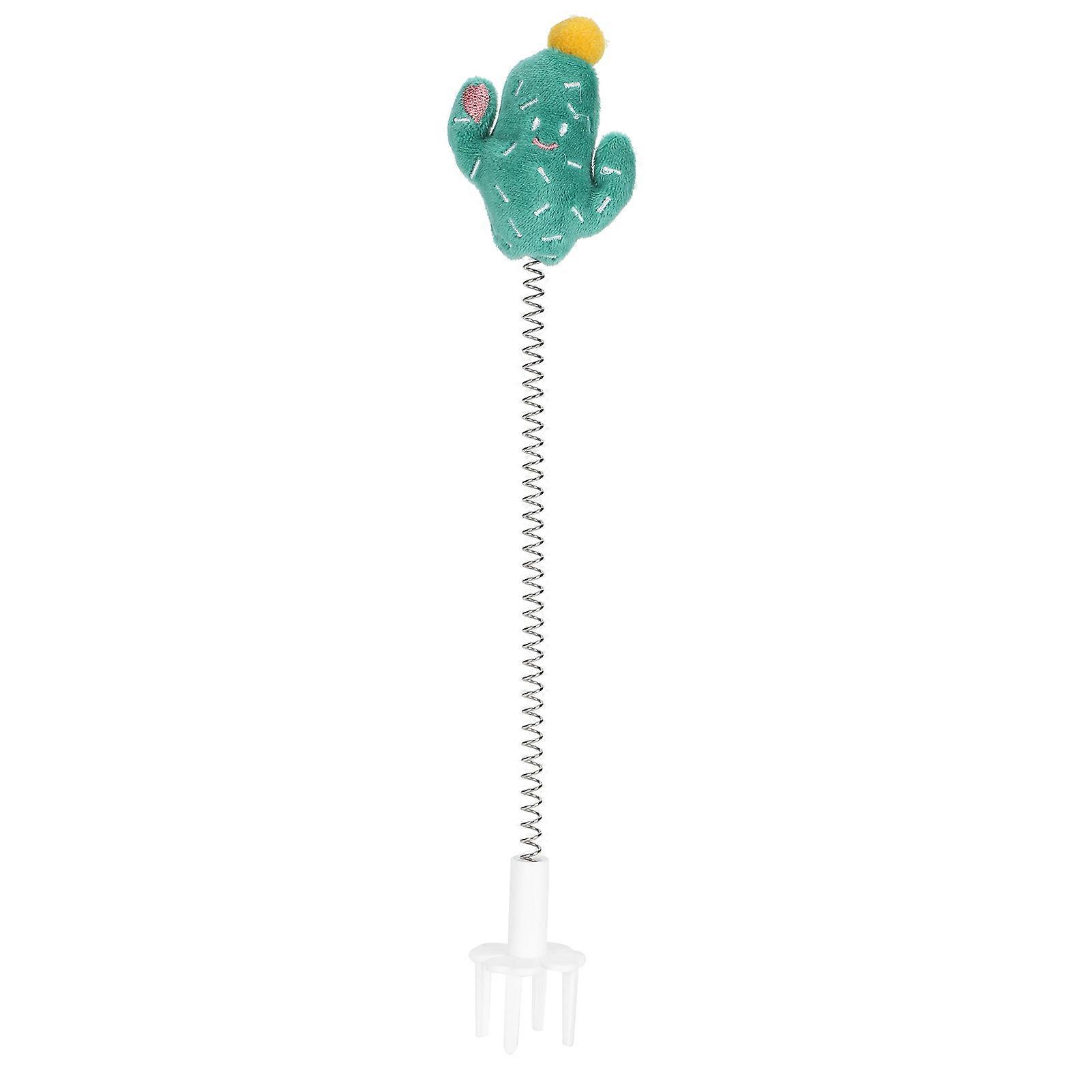 Cat Elastic Spring Toy Metal Wire Spring Funny Cat Stick Pet Interactive Teaser ToyCactus Green