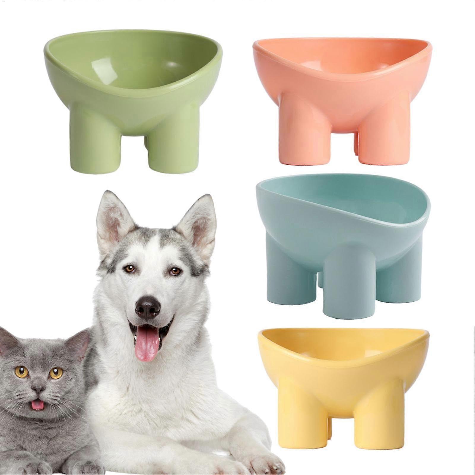 Cat Feeding Bowl Ceramic Neck Guard Anti-Tip Cartoon Pet Feeder, Flat Rim, Large Diameter, Raised Snack Tray, Slanted
