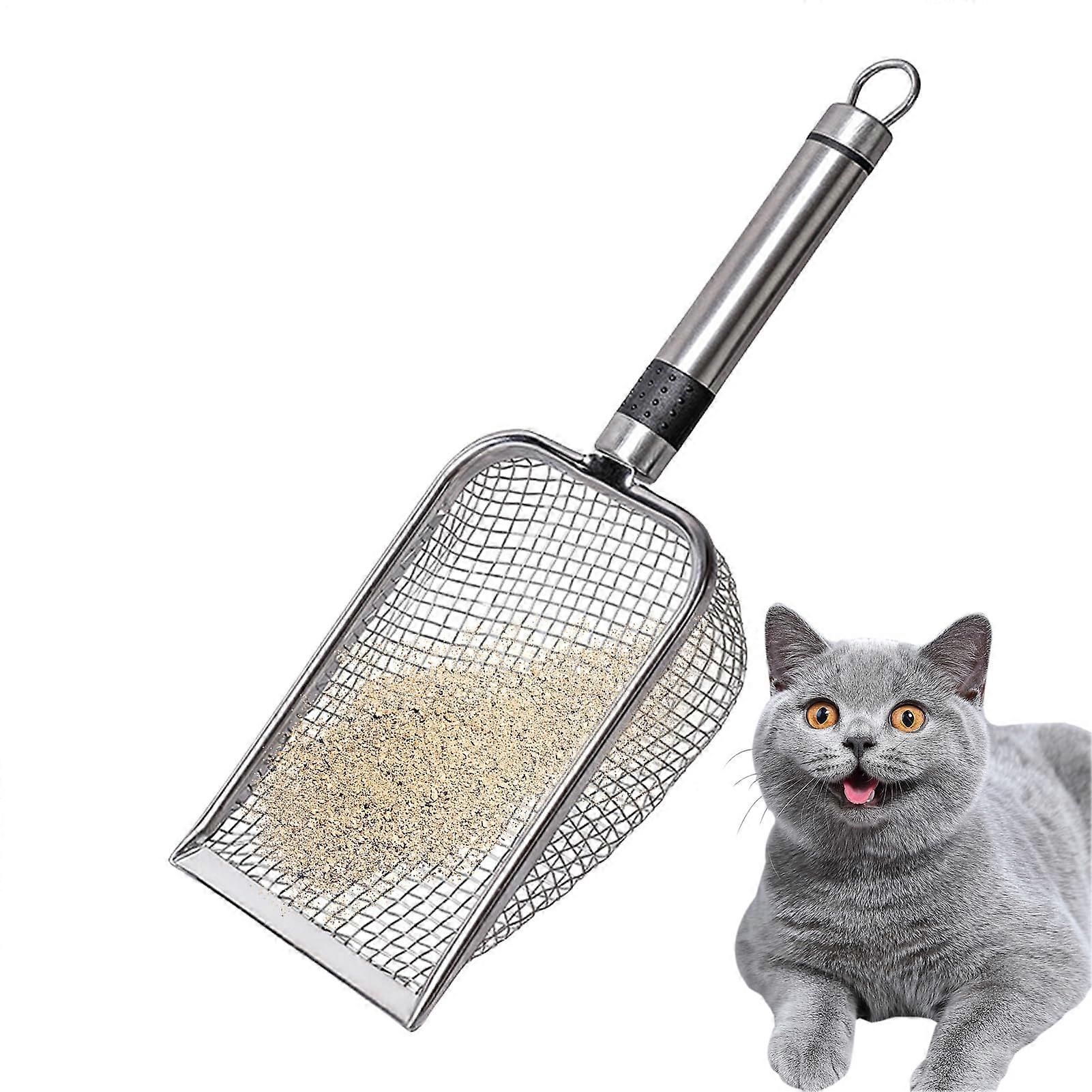 Cat litter scoop, stainless steel, deep scoop sieve, nonstick coated, long handle