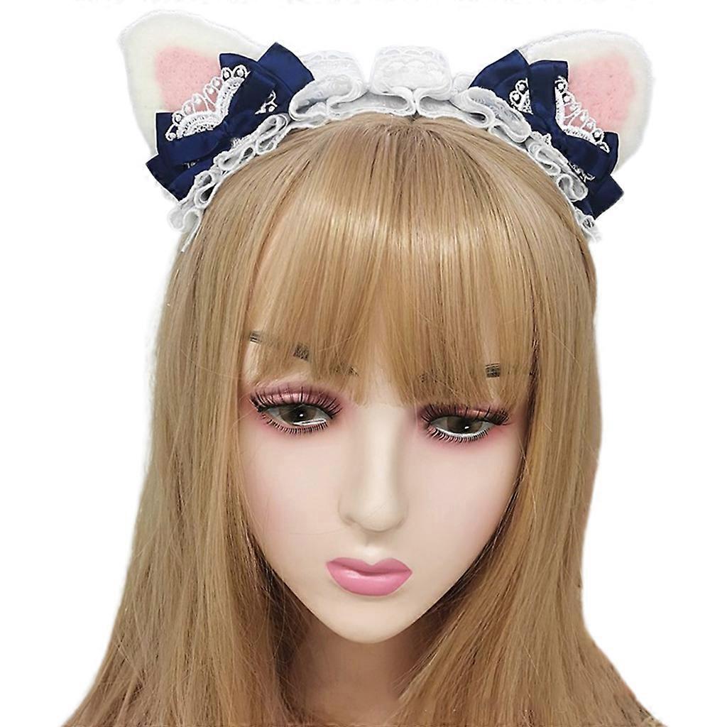 Japanese Lolita Plush for Cat Ears Headband Sweet Ruffled Lace Bowknot Animal Hair Hoop Kawaii Anime Maid Cosplay Headpi 2