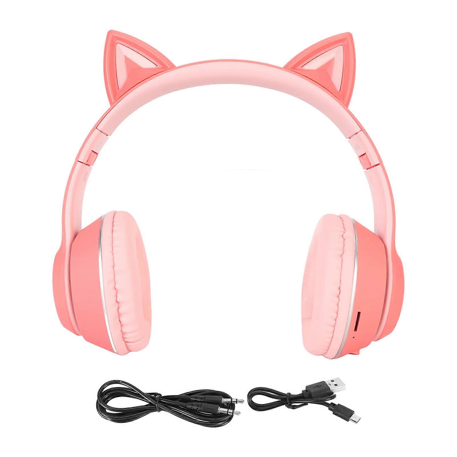 Feature 1 Bluetooth 5.0, LED Light: Kids bluetooth headphones use the latest bluetooth 5.0 technology to provide you with the perfect connection to any Bluetooth compatible listening device. With LED light. 2 Wired and Wireless Modes: Bluetooth headphones turn on with a long press of the on off button for about three seconds when using Bluetooth mode. The additional detachable 3.5mm sound cable can also be connected to any device with a 3.5mm headphone jack. 3 Comfortable to Wear: Cat ear kids bluetooth headphones feature padded ear cushions, ultra soft memory foam protein leather ear cups and a headband for maximum comfort. 4 Stereo HiFi Sound Quality: Cat ears bluetooth headset offers stereo HiFi grade sound quality and powerful bass. The excellent sound quality helps you enjoy music better. 5 Easy to Control: Cat ear kids bluetooth headphones have a built in microphone and volume control, allowing you to answer calls and play or pause songs with the push of a button. 6 Adjustable Design: Bluetooth headset has an adjustable headband that provides excellent flexibility for the headphones to perfectly fit the shape of your head. Easy to store and carry, so your child can wear the headset anywhere, anytime.Item Type: Bluetooth HeadphonesMaterial: ABSColor: PinkBattery Type: Built in 400mAh Lithium Ion Battery (included)Memory Card: Maximum Support 32GB (Not Included)Bluetooth Version: Bluetooth 5.0Transmission Distance: Approx. 10m/32.8ftFrequency Range: 20Hz-20KHzSpeaker Size: Approx. 40mm/1.57inImpedance: 32 Package List1 x Bluetooth Headphones 1 x Sound Cable1 x Charging CableNoteIt is recommended that you take off foldable children's headphones every 2 or 3 hours, so that the ears relax, in order to enjoy better listening and keep the head more comfortable to provide comfortable listening experience.