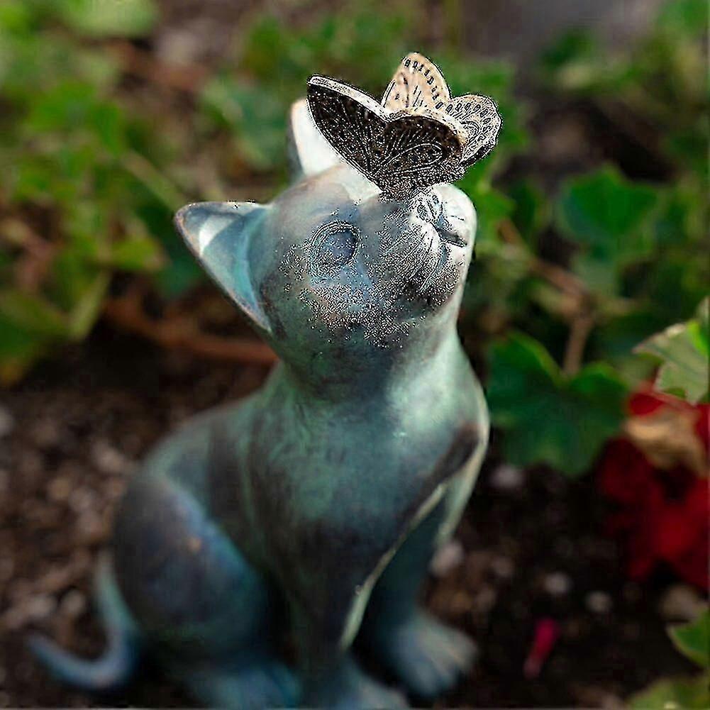 Cat Butterfly Statue Cat Figurine Garden Resin Cat Figurine Outside Ornaments Art Decor Fo