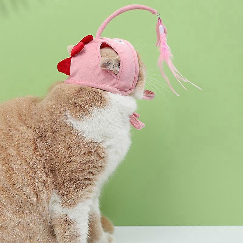Cat Fishing Headdress Toy Interactive Soft Cute Hat Feather Kitten Teaser Toy with Replaceable Pendant