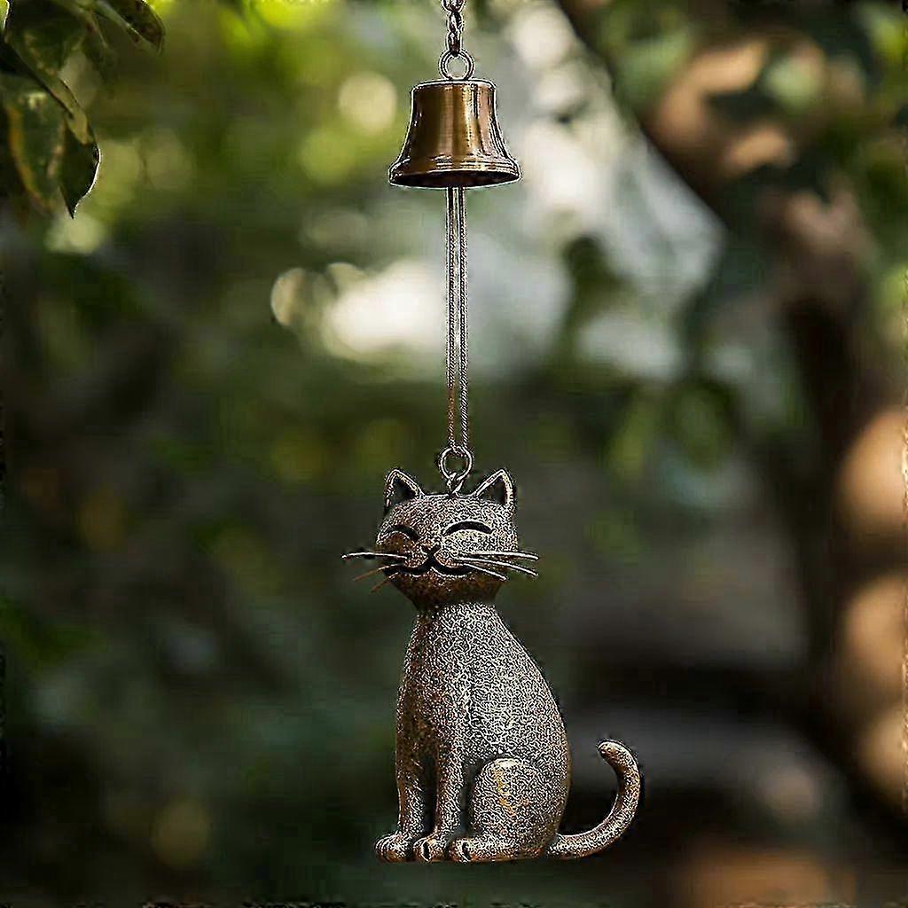 Cat Wind Chime New Unique Cat Garden Decor Outdoor Cat Statue Wind Chimes for Cat Lovers Hanging Memorial Ornaments Windchimes Bell Outside