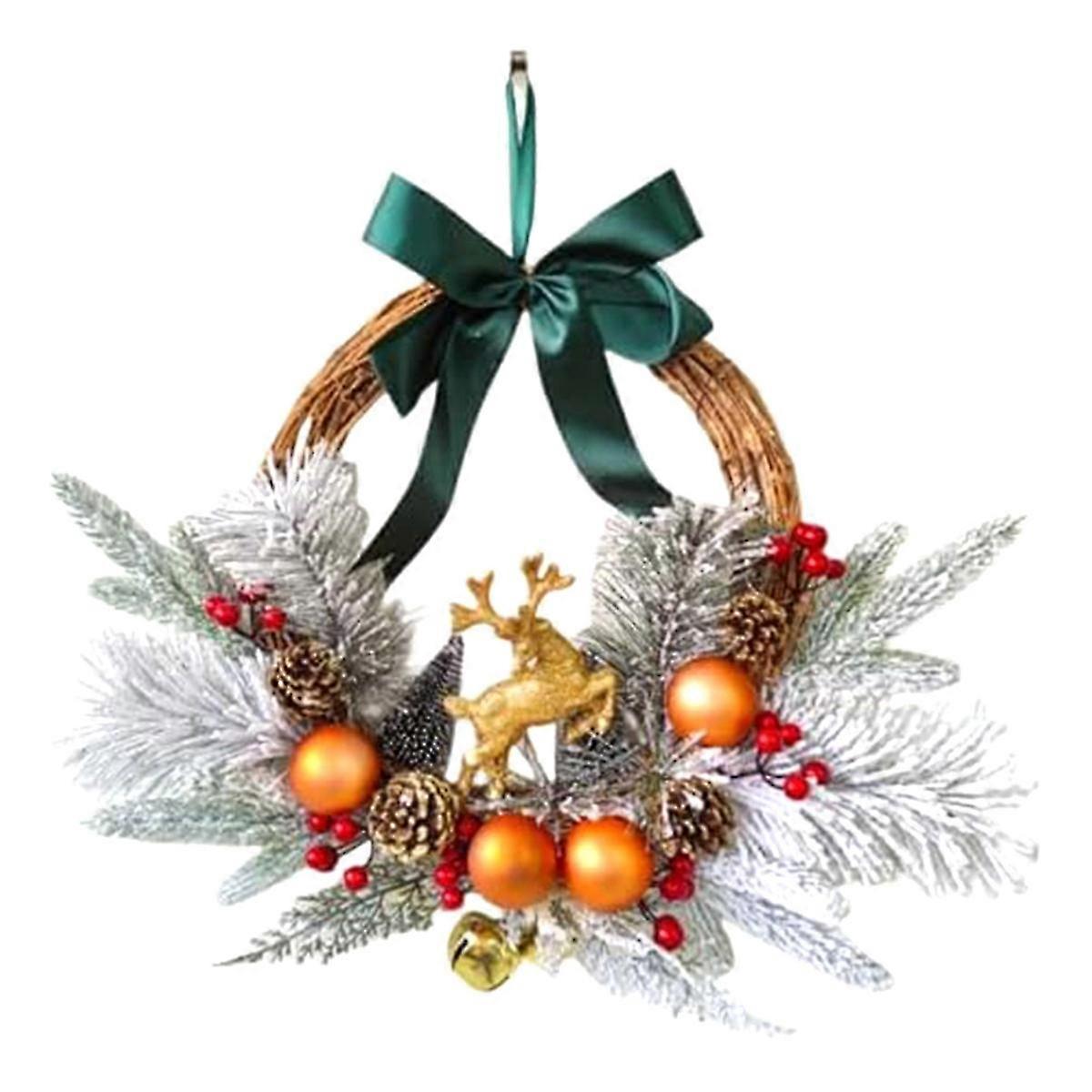 Christmas Reindeer Wreaths for Front Door Artificial Christmas Wreath with Christmas Ball Pinecones
