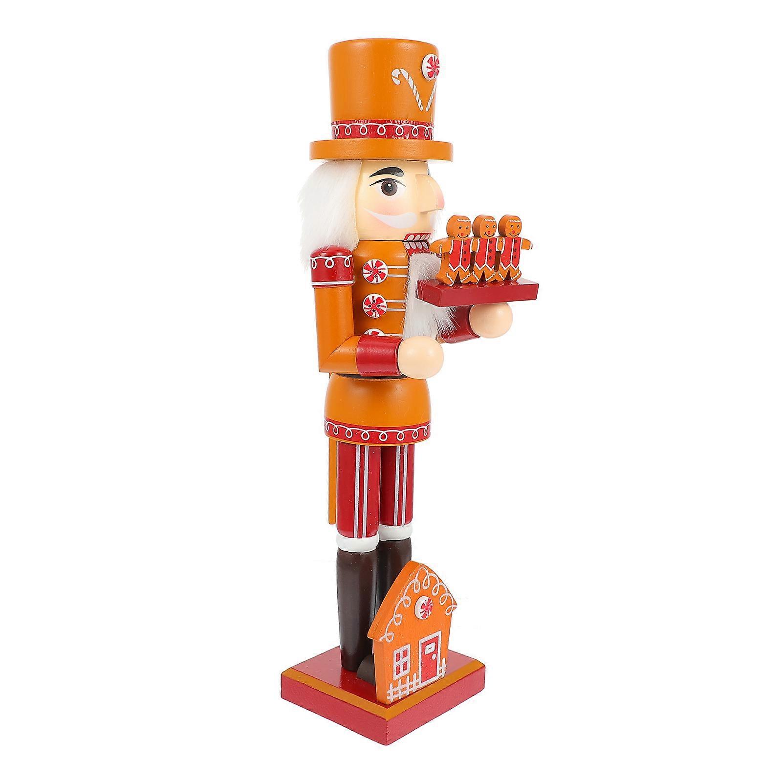 Front Door Nutcracker Nutcracker Figure Home Decoration 35x10x8cm Orange Wooden Festive Atmosphere 1Set