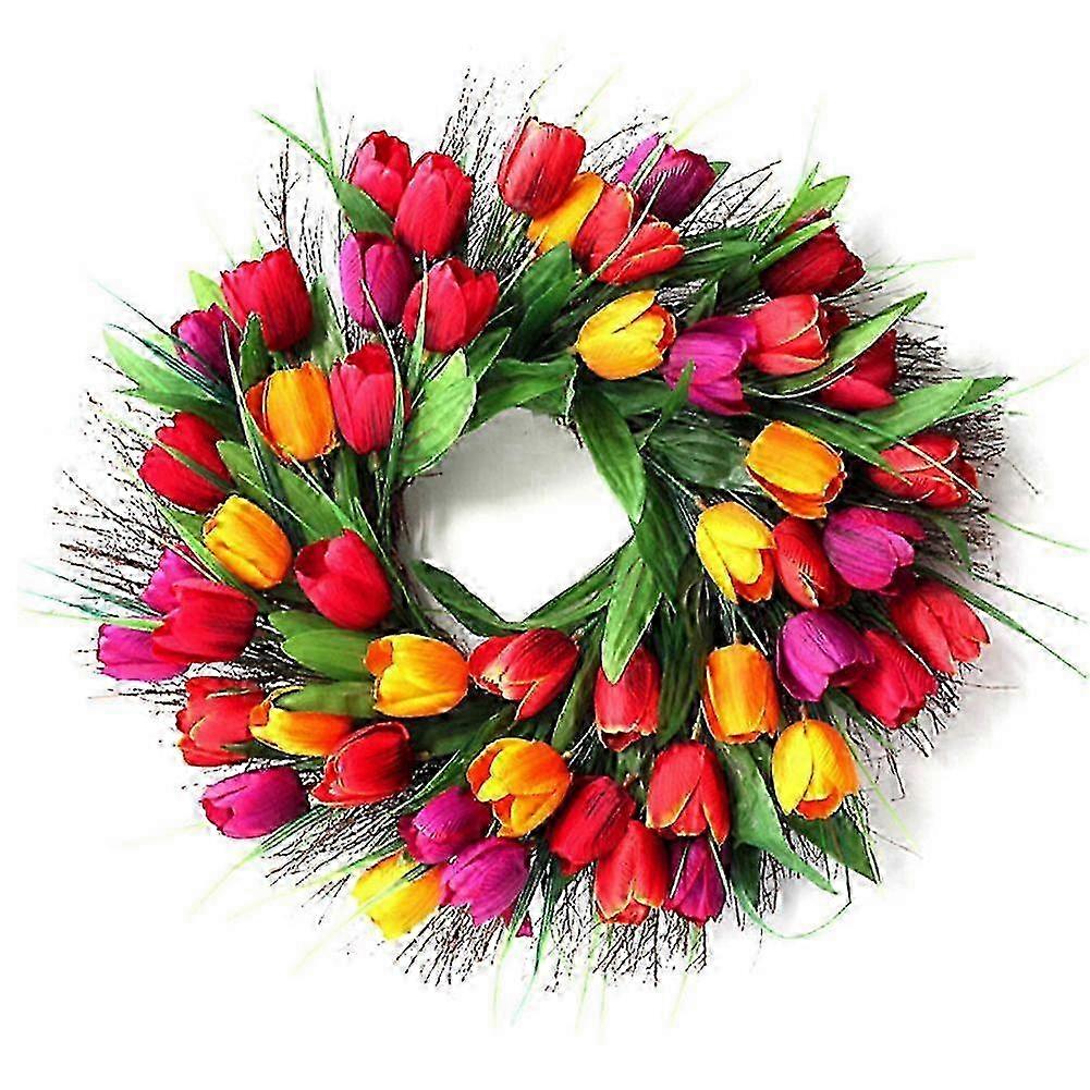 Spring Tulip Wreath for Front Door Wall Wedding Party Home Decor 45cm