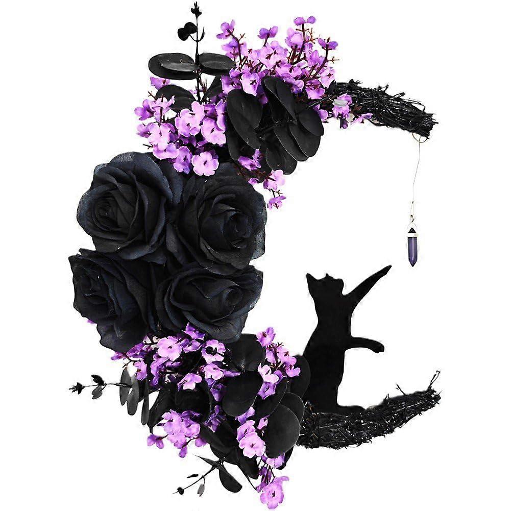 Halloween Wreaths for Front Door Moon Wreath With Black Cat And Rose Grapevine Garland Cat Door Wreath Gothic Door Decor