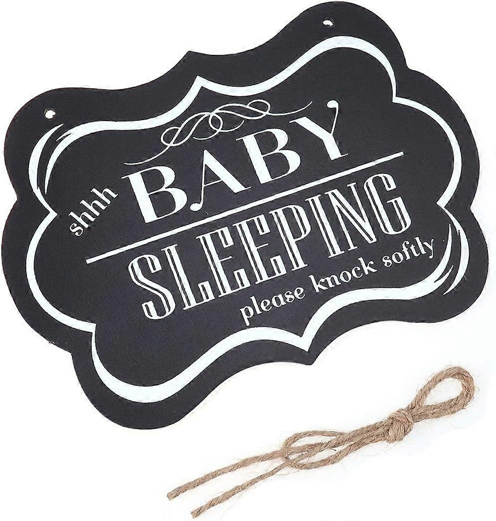 Baby Sleeping Sign for Front Door shhh BABY SLEEPING please knock softly Wooden Hanging Baby Sleeping Door Sign for Bedroom Nursery, 22x16cm(1pcs)