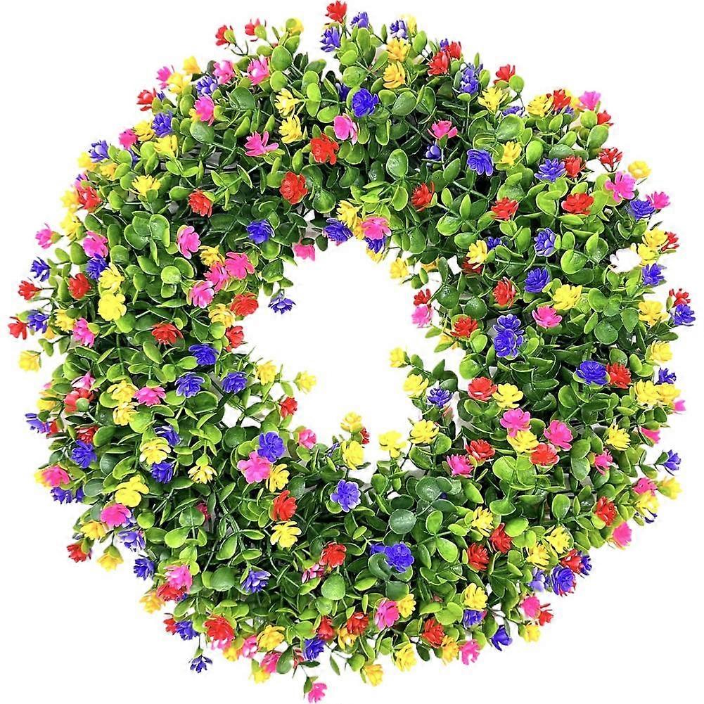Greenery Wreath for Front Door,17 Artificial Green Hanging Garland for Spring
