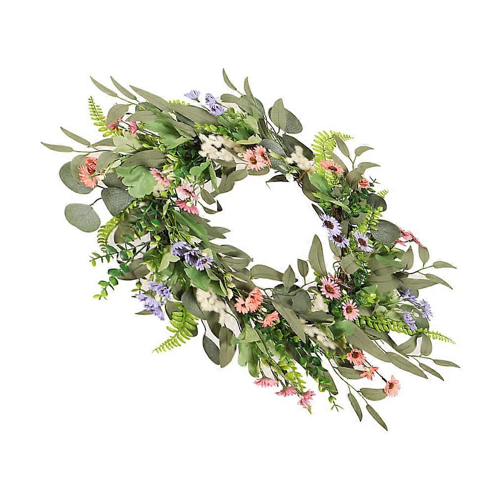 Front Door Eucalyptus Wreath Artificial Daisy Flower Wreath Home Decoration Assorted Color 50X50X5CM 1Pcs