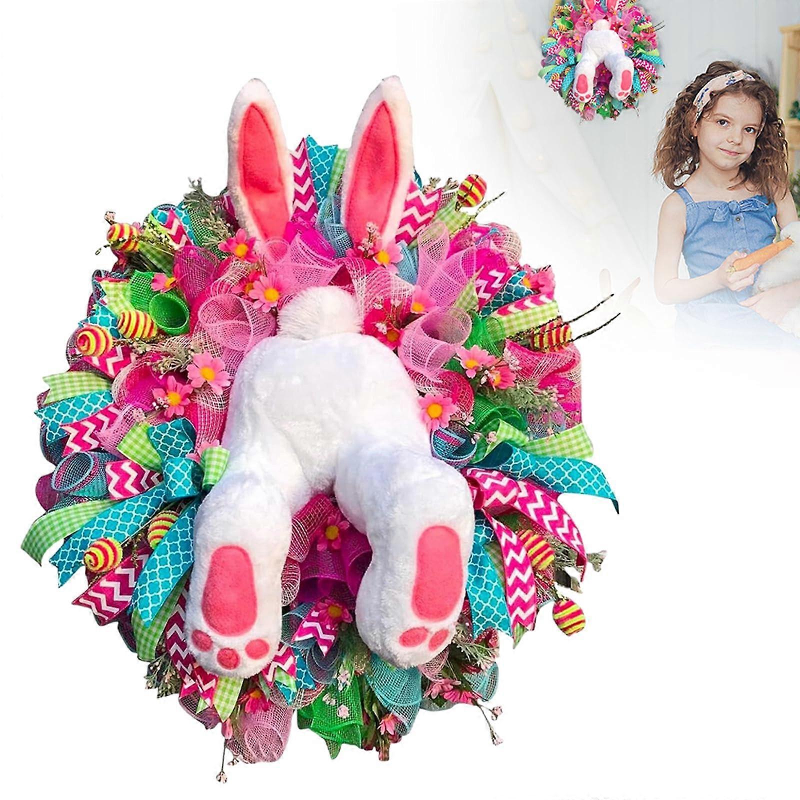 Easter Bunny Wreaths for Front Door, Bunny Door Ornament Rabbit Garland Wreath, Premium Handmade Easter Rabbit Butt Wreath