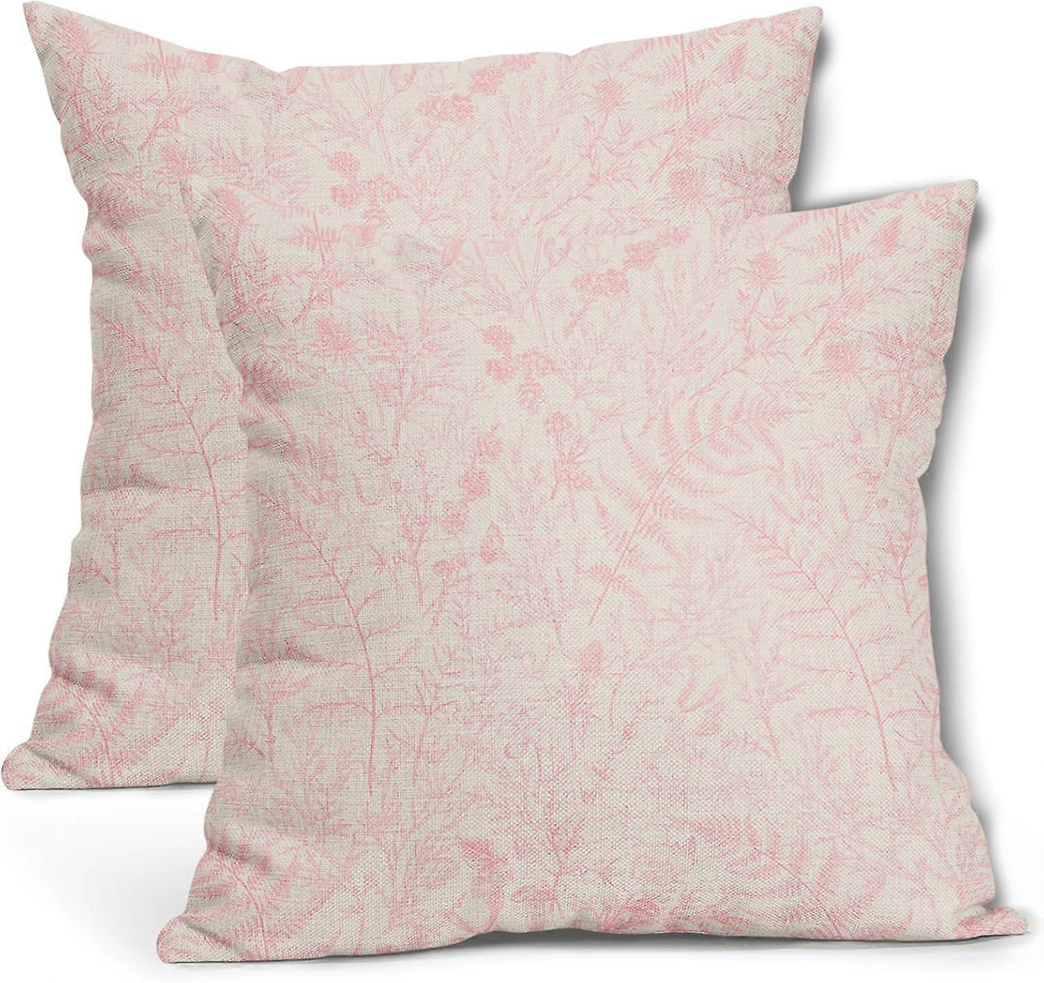 Coral Fern Leaves Pillow Covers 16X16 Inch Plant Leaf Floral Pine Decorative Pillow Cases Vintage Botanical Spring Summer Throw Pillows Set of 2 Farmh