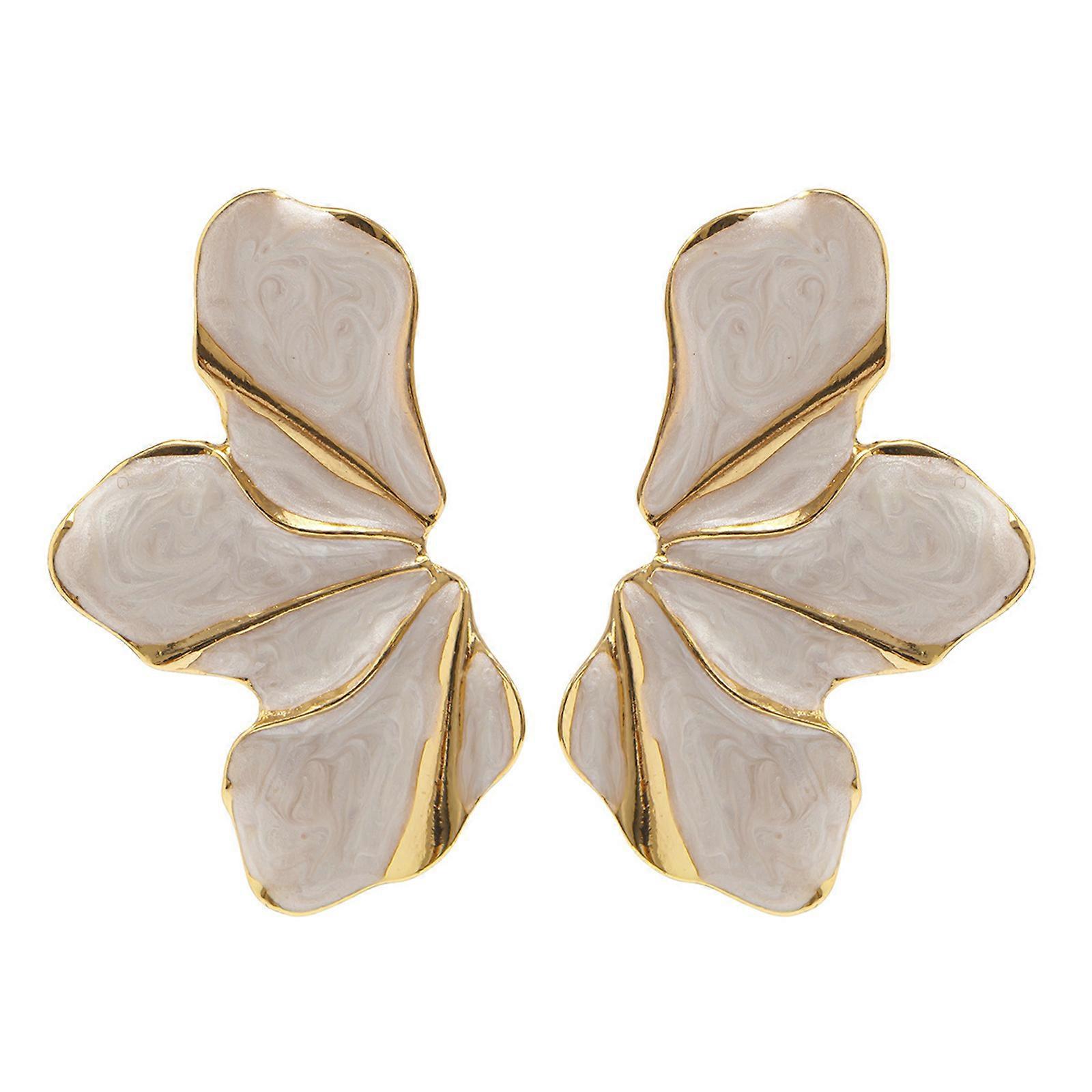 Modern Irregular Shaped Drip Oil Flower Earrings Multifuntional Fashion Accessory Ear Studs Present for Woman and Girls White
