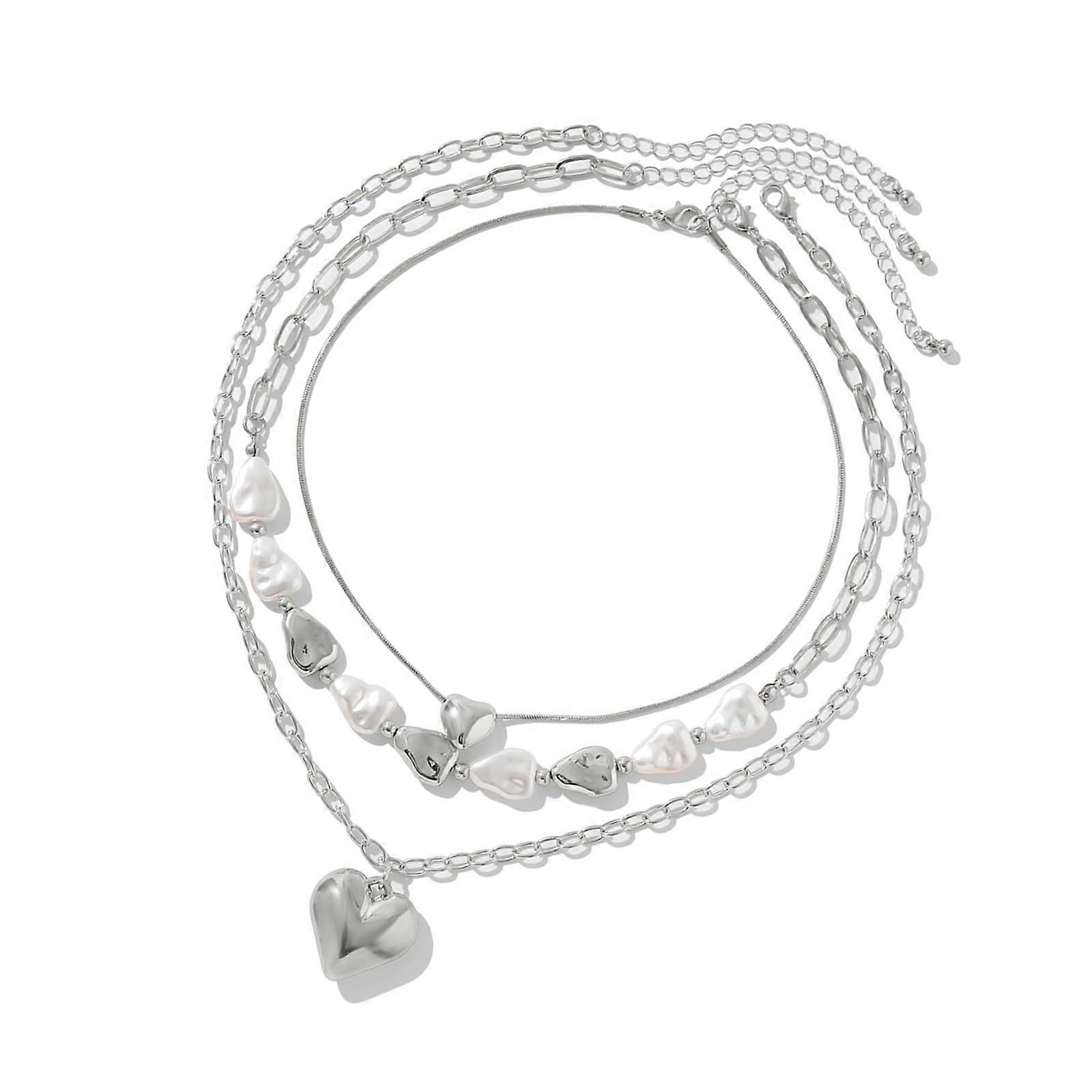 Modern Art Pearl Heart Pendant Necklaces Set of 3 Adjustable Chain Stylish Neck Accessory for Fashion Lovers White K