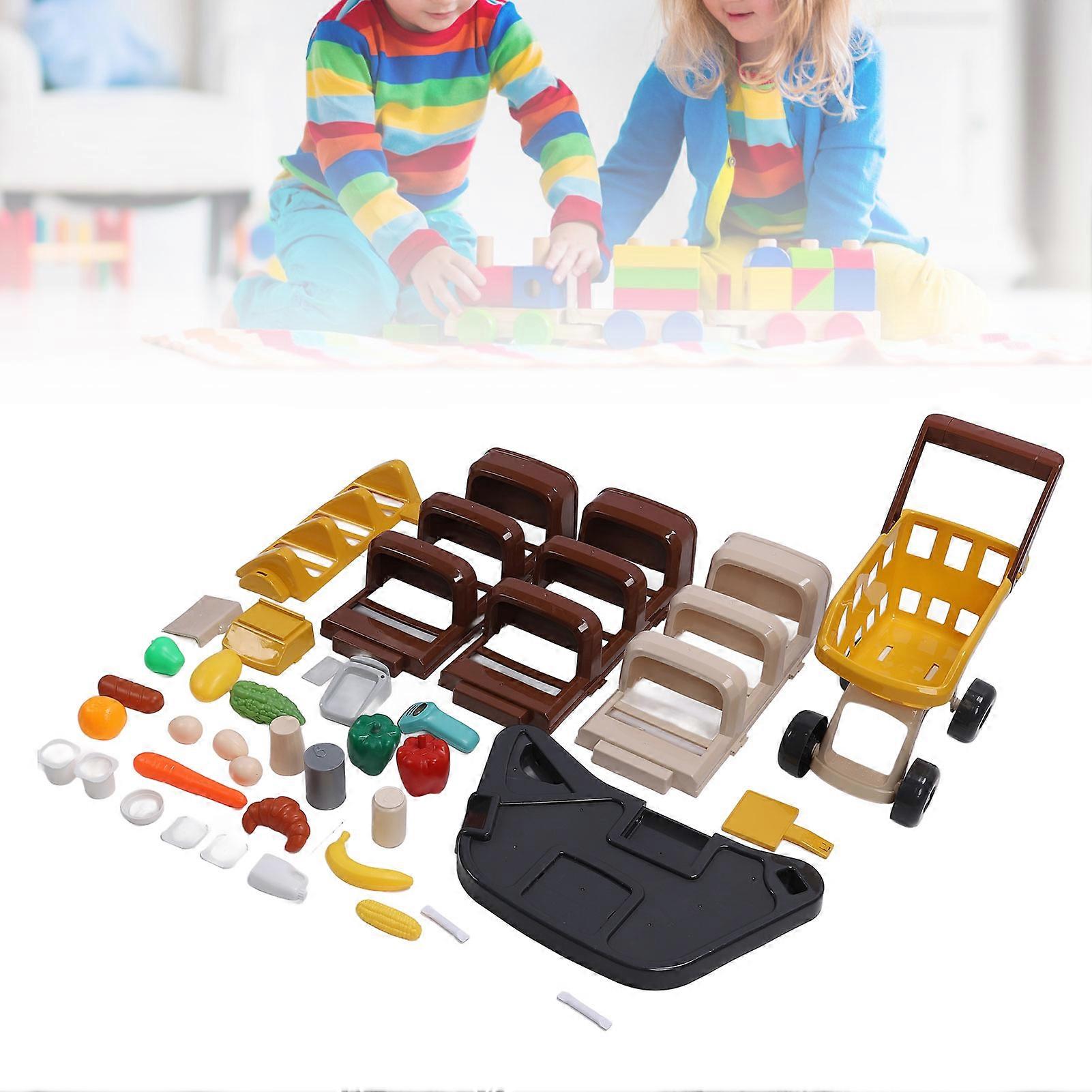 Cash Supermarket Playset for Kids with Working Scanner Register Shopping Cart Play Food Grocery Store Playset Toys Accessories