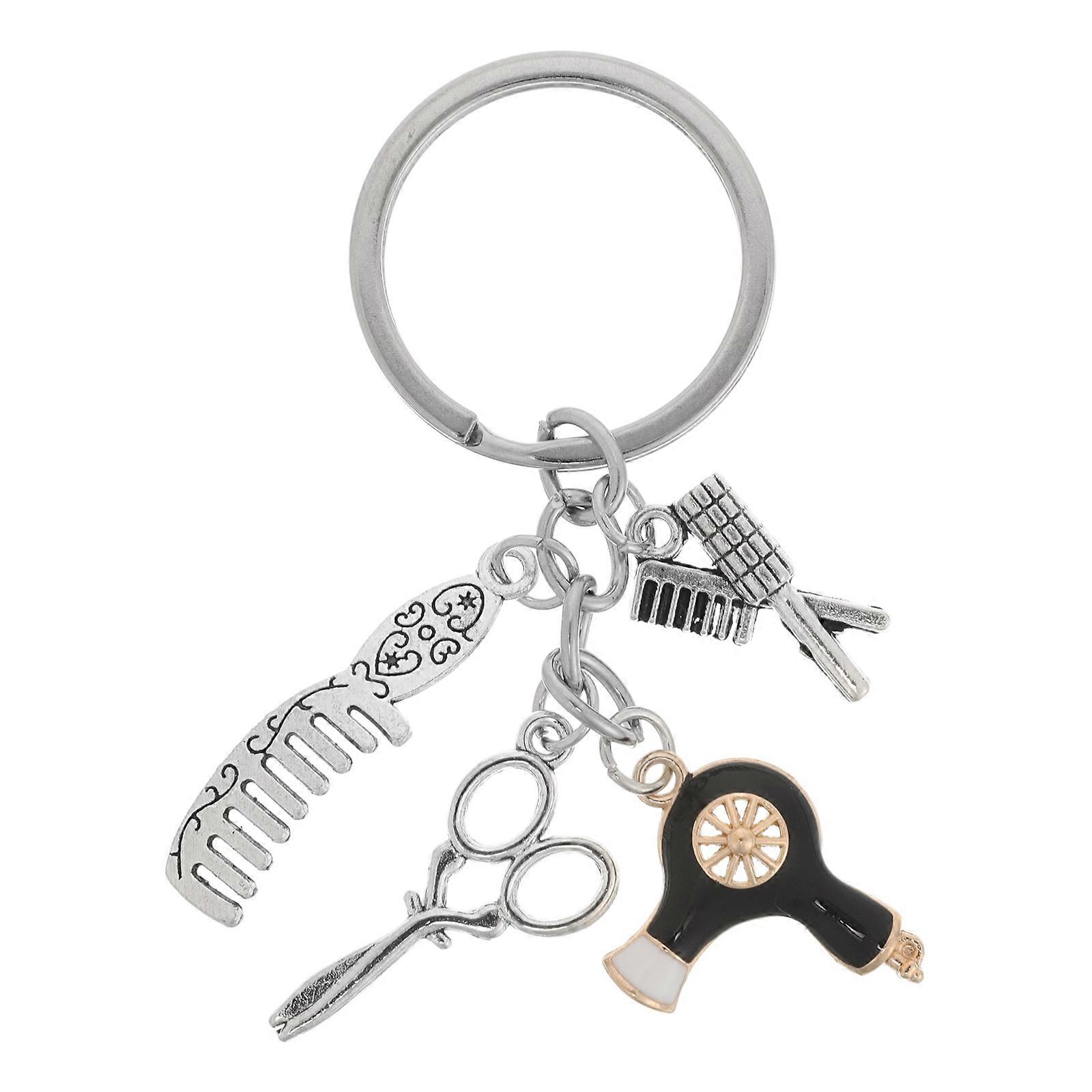 Hairdressing Tool Keychain Set Scissor, Comb & Hair Dryer Charms, Silver Metal Accessories for Handbags, Hair Stylists &