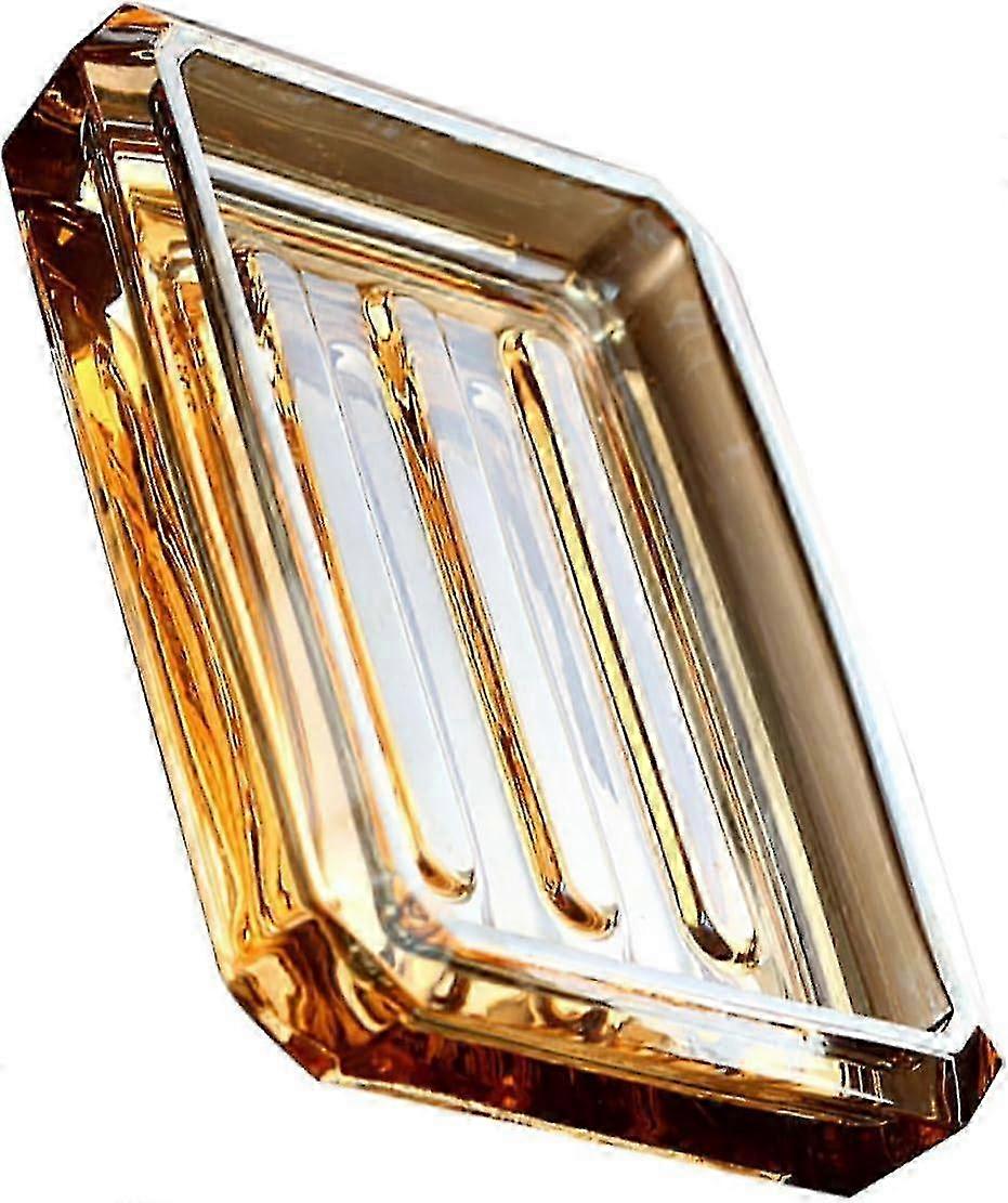 Amber Transparent Soap Box - Glass Tray for Tub, Spurtle & Sponge Storage, Elegant Bathroom Decor