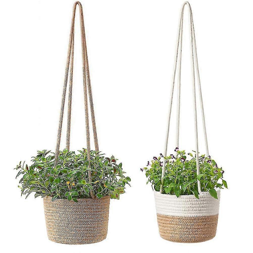 Eco-Friendly Cotton Rope Hanging Planters, Multiuse Storage Container, Ideal for Indoor Hanging Organizer, Fits 7" Pot, with Reinforced Hanger, for