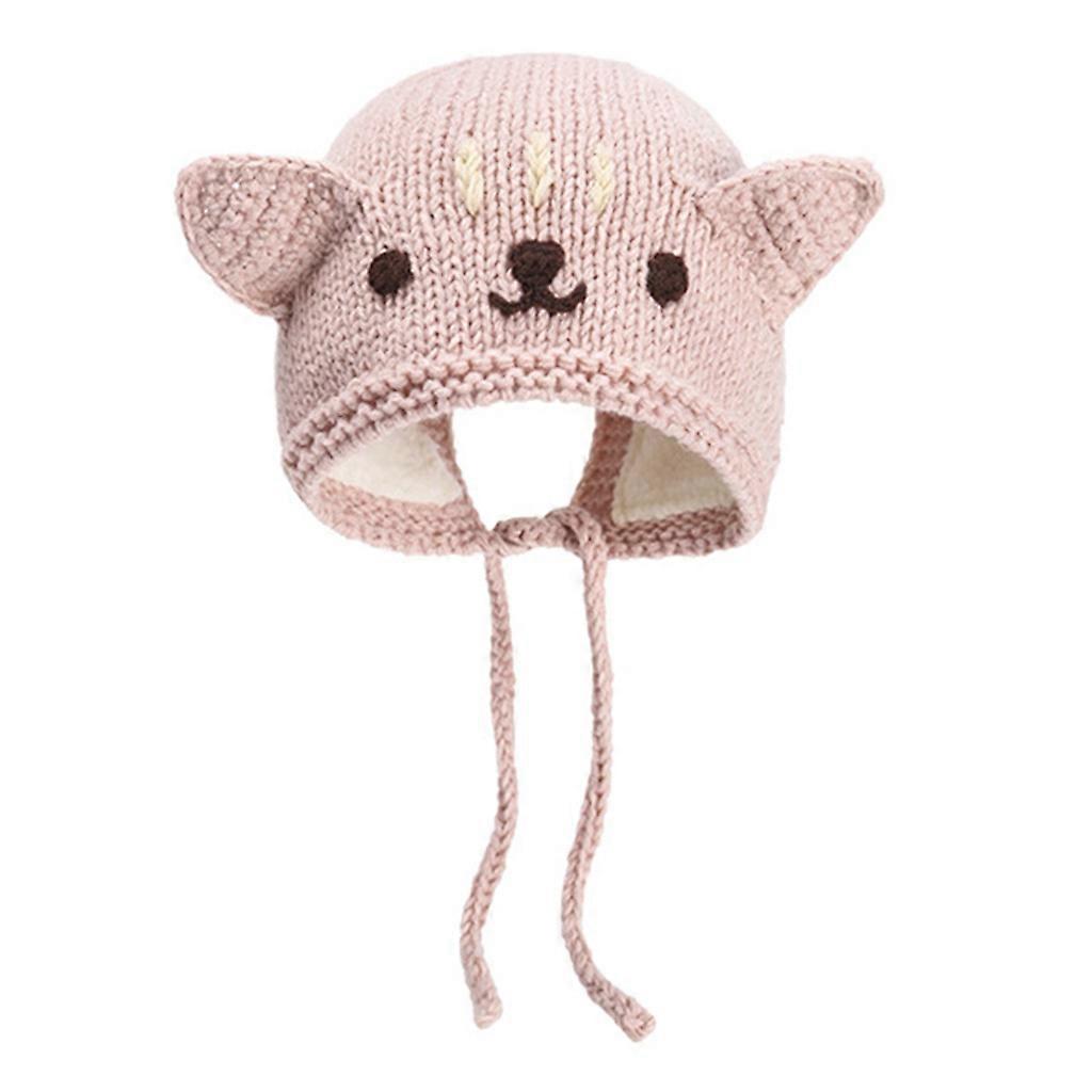 Sweet Cute Children Cute Kitten Lace-up Baby Knitted Hat Knitted Beanie Hat Travel Autumn and Winter for Baby Boys Girls Pink
