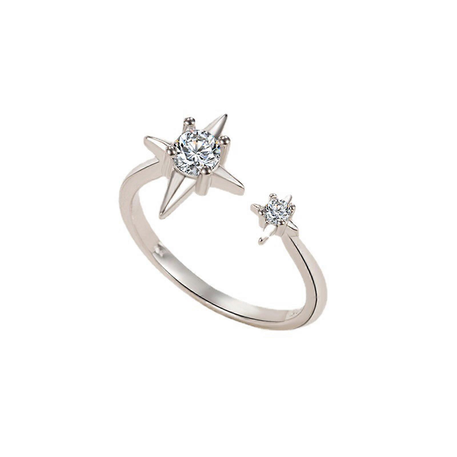 Sweet Cool Temperament Four-star Light Zircon Open Ring Cold Wind Simple Niche Design Rhinestones Ring for Women Girls