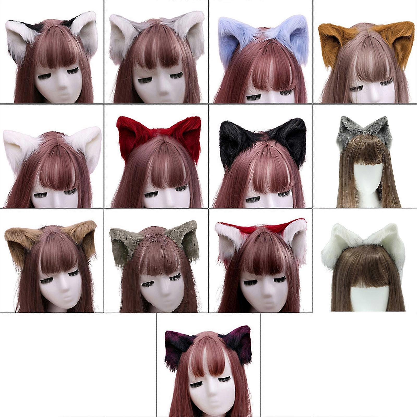 Sweet Lovely Furry Animal Beast Ears Hair Clips Anime Lolita Wolf for Cat Cosplay Plush Hairpins Halloween Party Costume Black