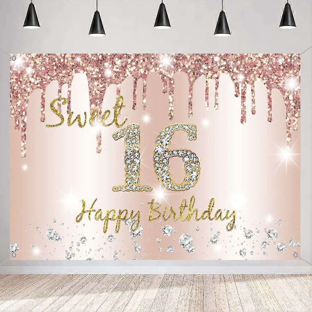 Sweet 16th Birthday Girl Decoration, Sweet 16th Birthday Banner Rose Gold Fabric Sign Poster Background Banner Girls Birthday Party Decoration