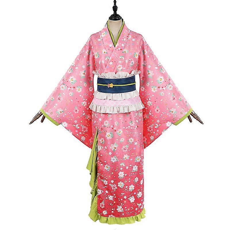 Mitsuri Kanroji Kimono Cosplay Costume Floral Anime Yukata Robe Set with Obi Belt & Bow | Japanese Style Demon Slayer Outfit (XSXXL)