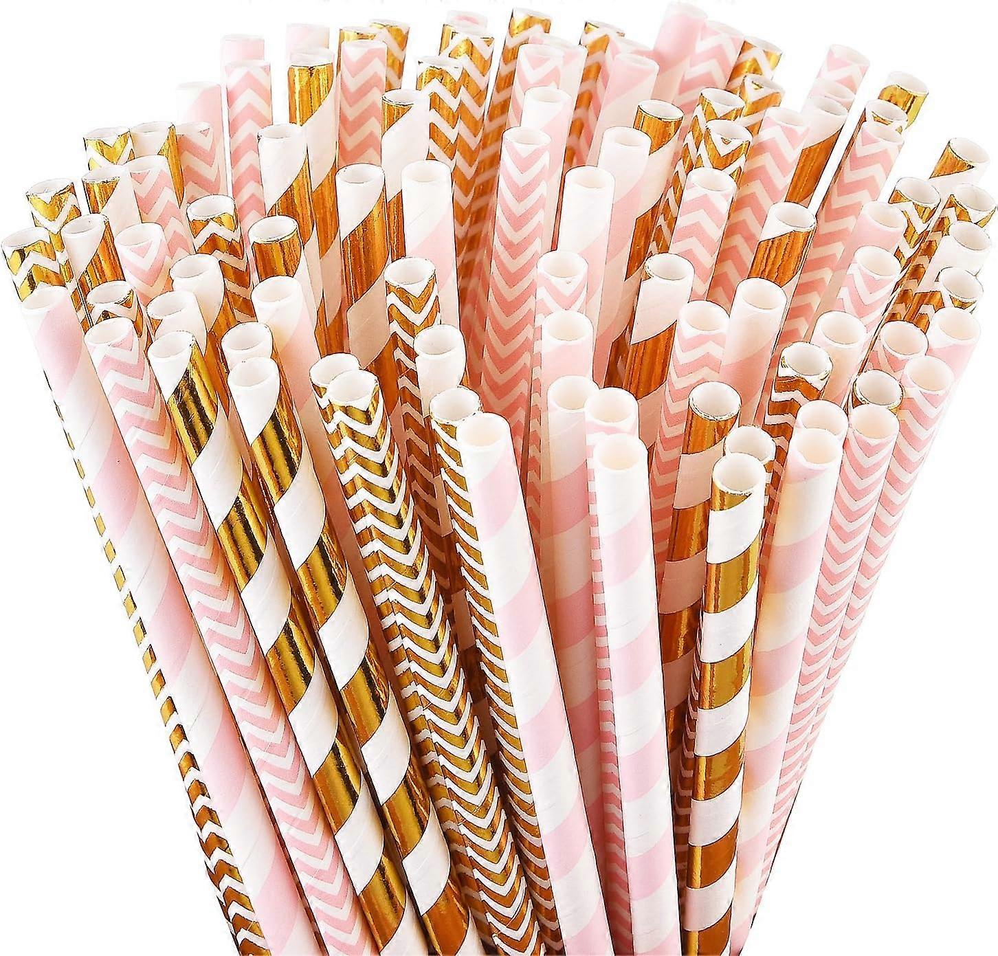 Biodegradable Paper Straws, 100 Count, for Party Supplies, Birthdays, Weddings