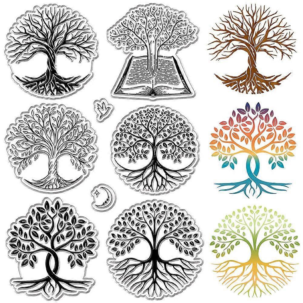 Tree of Life Clear Stamps Moon Plant Book Bird Reusable Postmark Transparent Silicone Stamp Seals for DIY Scrapbooking Journaling Card Making Decor Fi