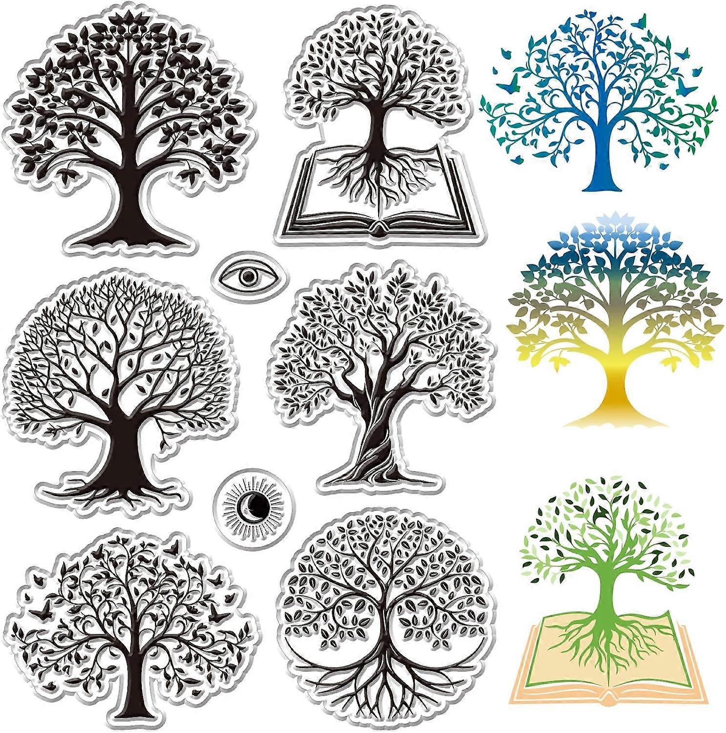 Tree of Life Clear Rubber Stamps Evil Eye Moon Sun Vintage Reusable Transparent Silicone Stamp Seals for DIY Scrapbooking Journaling Card Making Decor