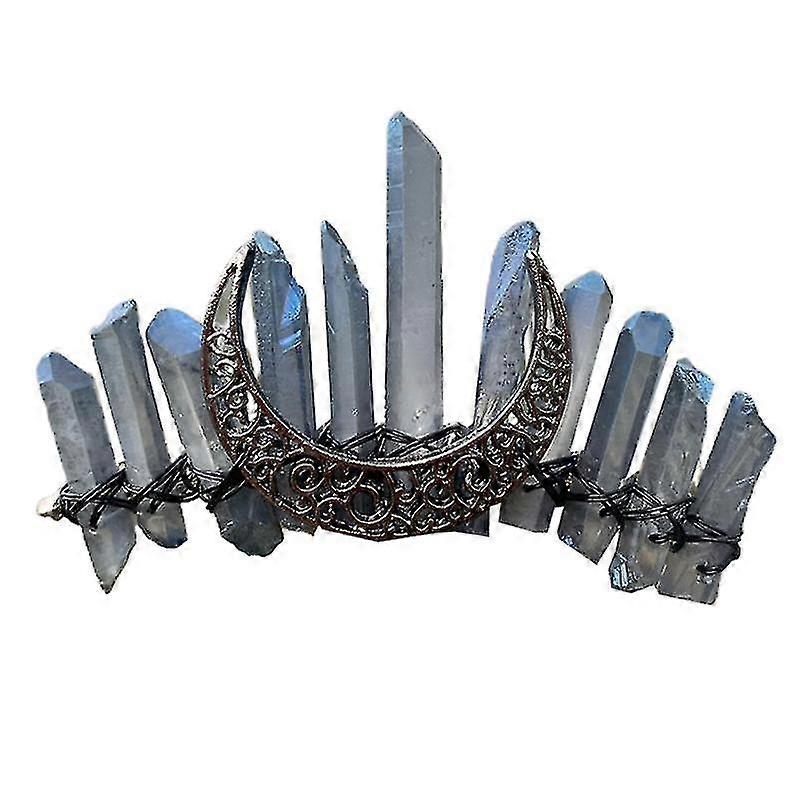 Raw Quartz Crystal Tiara Hair Comb Bridal Jewelry Anitque Moon Metal Hairpin