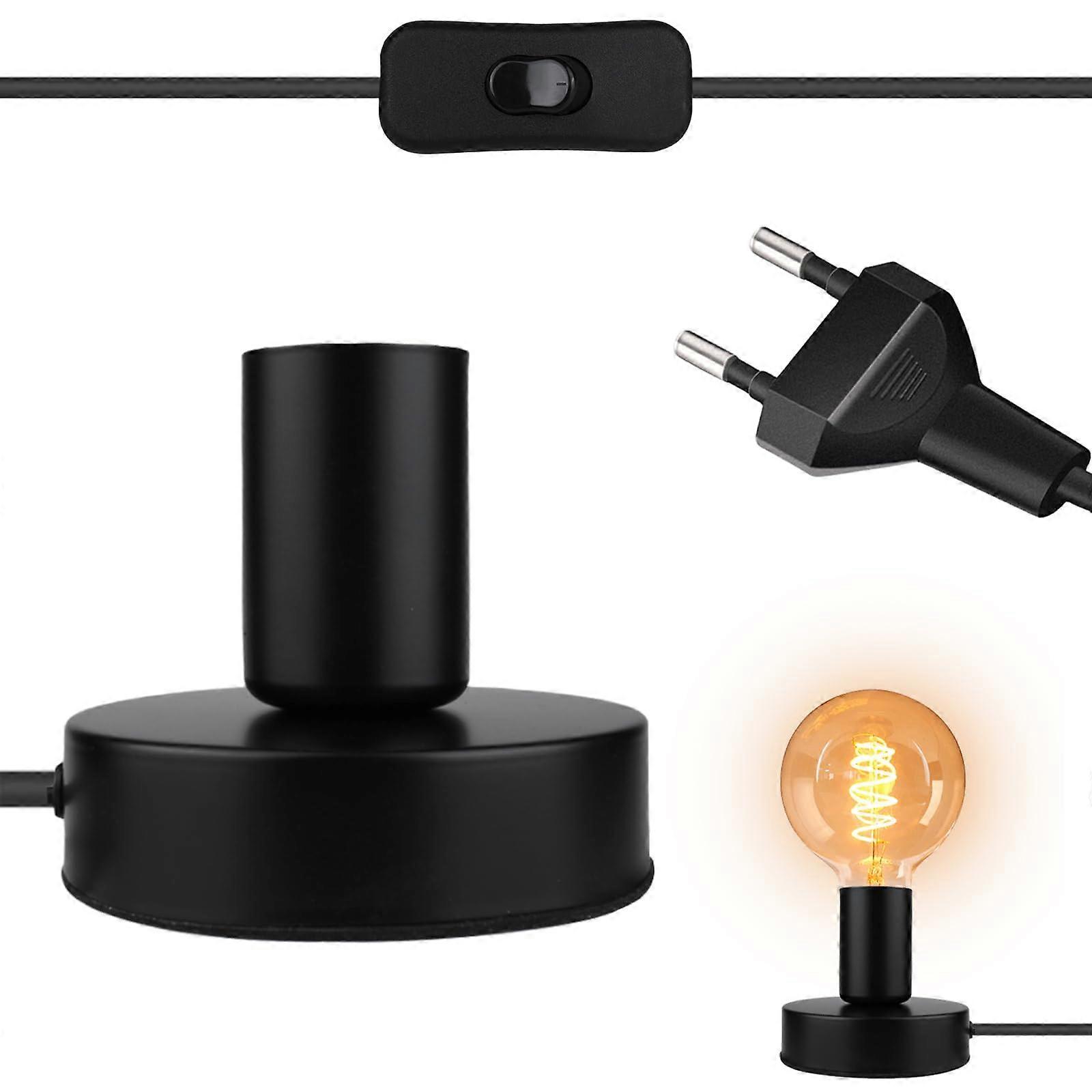 E27 Desk Lamp Holder with Cable Switch, Vintage Industrial Table Lamp for Home and Cafe Decor, Black Finish